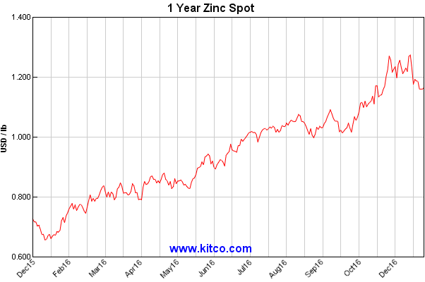 We had another significant event occur that directly impacted coated steels: on November 14th NLMK USA became the first U.S. steel mill to adjust zinc coating extras to reflect the higher cost of zinc which had gone from the low $0.60’s per pound to slightly above $1.10 per pound when the announcement was made. Zinc continued to move higher reaching $1.27 per pound in mid-December 2016. Since the 15th of December zinc prices have returned some of their gains and is currently trading around $1.14 per pound.