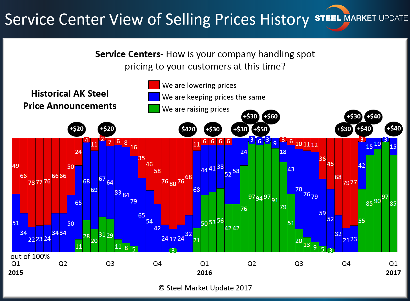Our opinion (SMU) is the other steel mills will follow the AK Steel lead and announce new transaction pricing early next week (week of January 9, 2017).