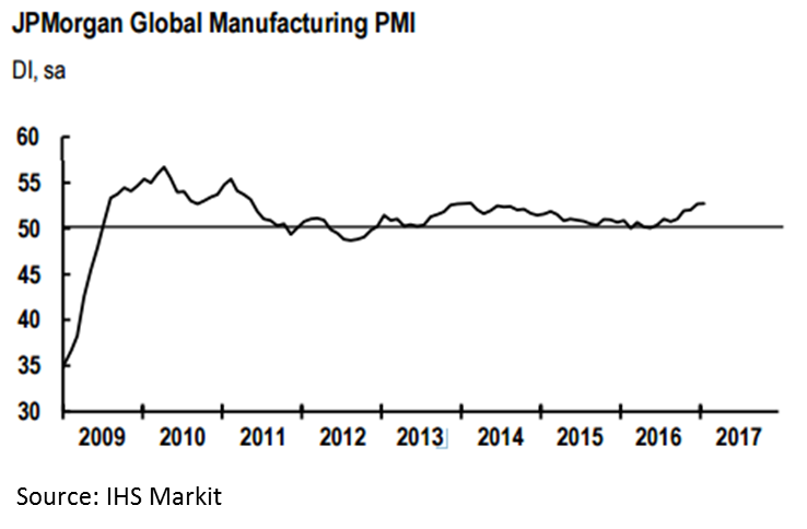 David Hensley, Director of Global Economic Coordination at JP Morgan, said: “Business conditions in the global manufacturing sector improved at a solid pace in January, with output, new orders and employment all expanding at similar rates to December. With backlogs of work rising further and business confidence increasing, the sector looks firmly set to build on this solid start to the new year during the coming months Please note that later than usual release dates meant January 2017 PMI data were not available for. Previously published readings for the global manufacturing indices have also been restated following the annual review of the weights applied to the national PMI data.