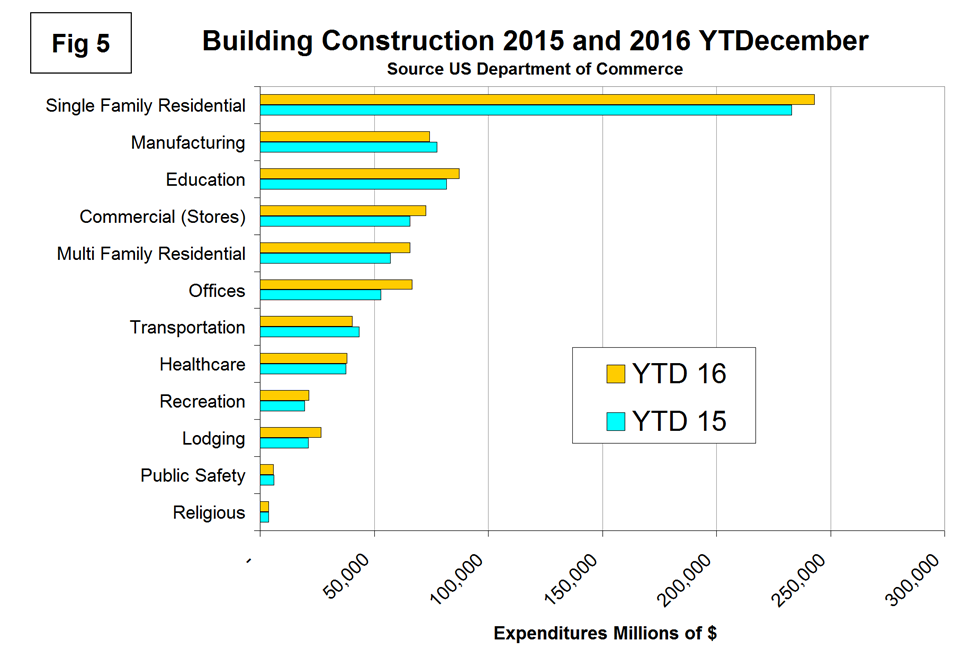 Figure 5 compares YTD expenditures for building construction for 2015 and 2016.