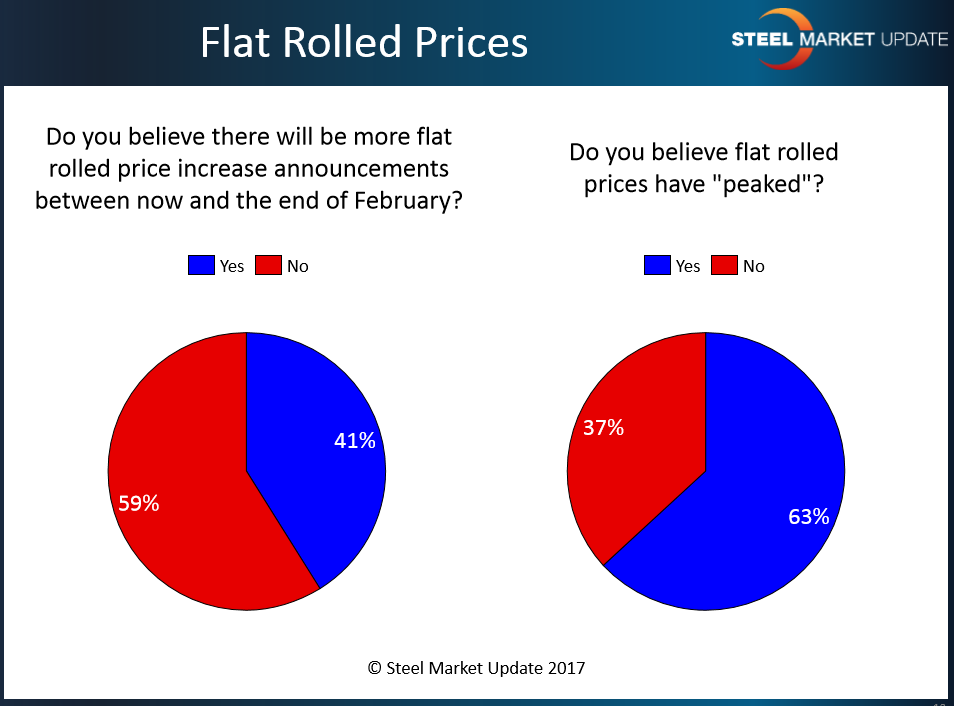 SMU also asked if flat rolled prices had “peaked” and 63 percent believe they have with 37 percent believing they have not.