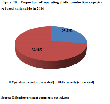 Custeel writes in its report, “The shortcomings of the overcapacity reduction effort apparent in 2016 developments threaten to undermine the effectiveness of the entire policy of cutting excess industrial capacity, unless addressed soon.”