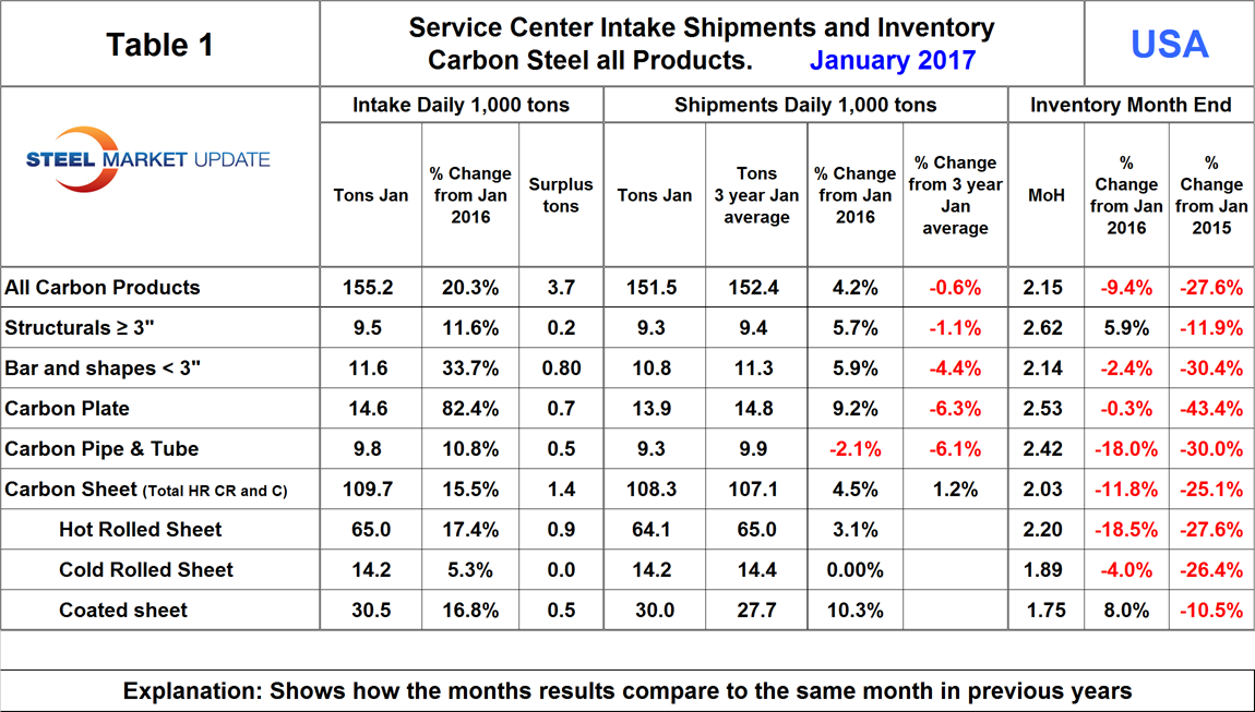Provided that the January shipment tonnage didn’t steal from February we can expect the next report to be up by over 11 percent. In the SMU analysis we always consider year over year changes to eliminate seasonality, our intention is to provide an undistorted view of market direction.
