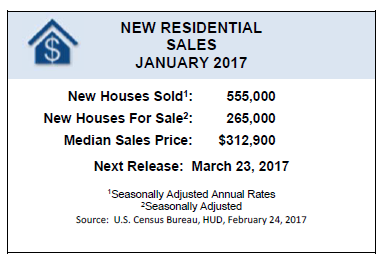 Sales of new homes climbed 3.7 percent in January to a seasonally adjusted annual rate of 555,000, according to estimates released jointly today by the U.S. Census Bureau and the Department of Housing and Urban Development. January sales were 5.5 percent higher than the January 2016 estimate of 526,000.