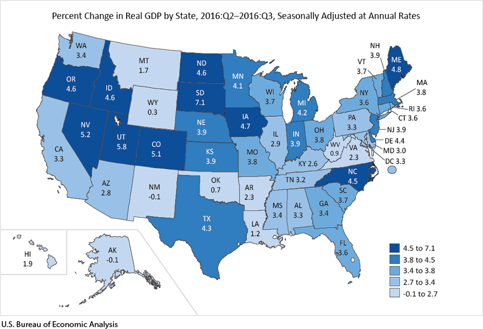 US Gross Domestic Product by Region and by State - Q3 2016