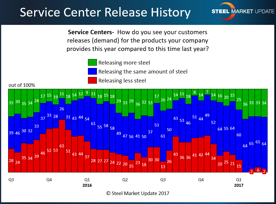 We like to concentrate on service centers, asking them how they are seeing the releases (demand) from their customers. Here is what they told us: