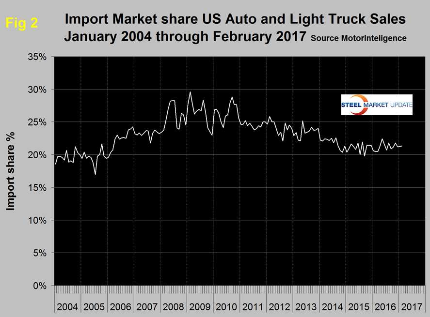 Import market share at 21.3 percent in February has changed little in the last year as shown in Figure 2.