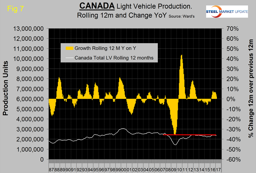 Figures 6, 7 and 8 show total LV production by country with y/y growth rates and on each the red line shows the change in production since Q2 2006.