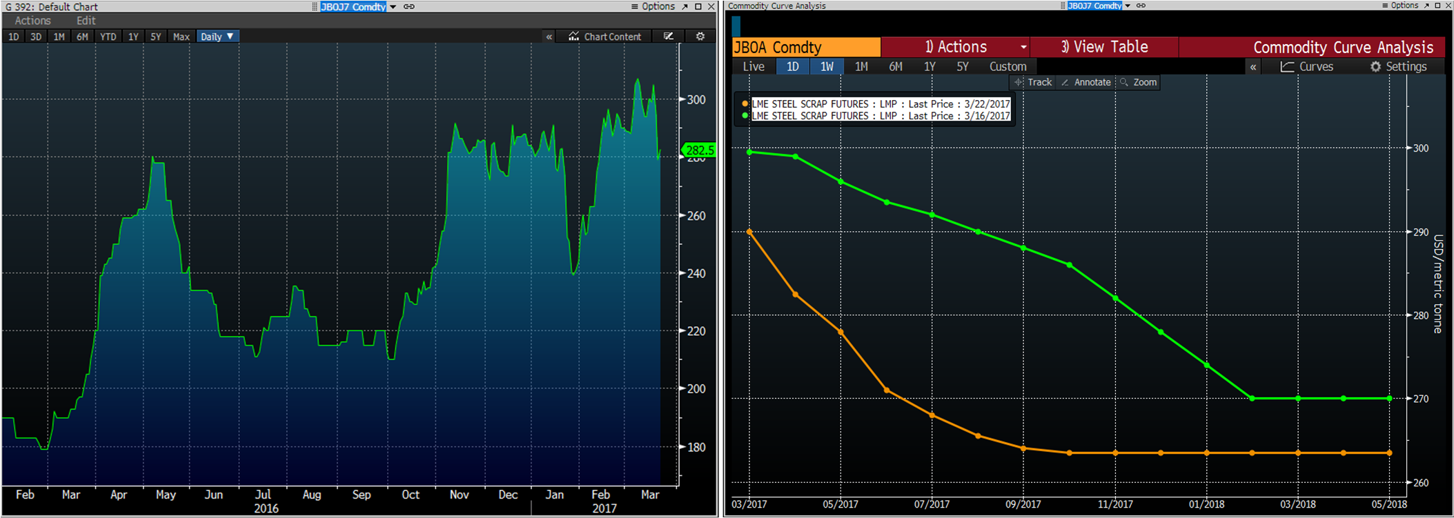 April LME Turkish scrap futures fall $17.5 to $282.5/t in the past week.