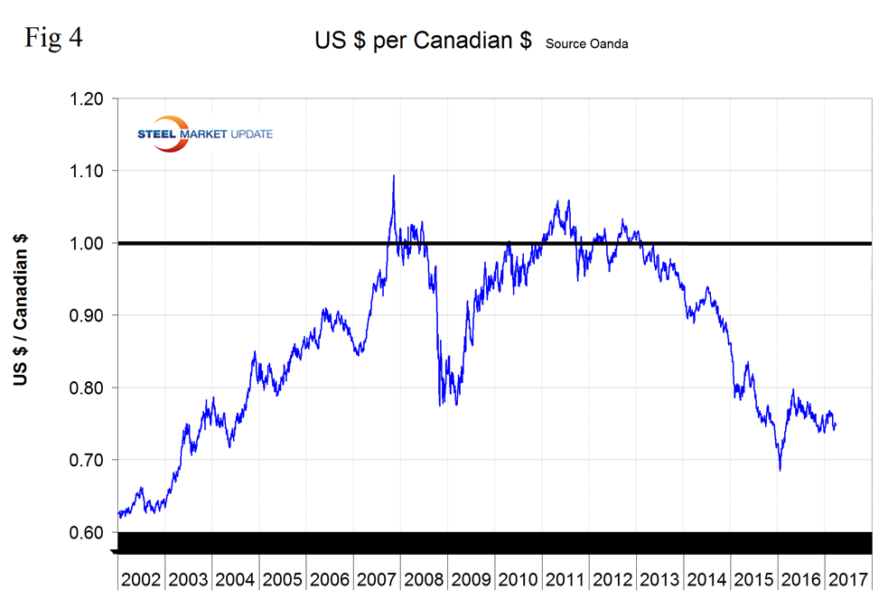The Canadian $ has been relatively stable over the last year with only a 0.9 percent decline against the green back (Figure 4).