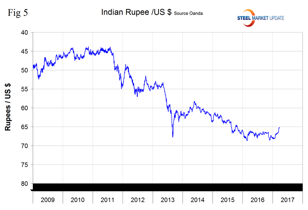 This is the first time we’ve reported on India which is an oversight because their steel production volume is approaching 100 million tonnes. On February 22nd the IMF Executive Board Concluded 2017 Article IV Consultation with India. The following is extracted from the IMF statement. Economic risks are tilted to the downside. On the external side, despite the reduced imbalances and strengthened reserve buffers, the impact from global financial market volatility could be disruptive, including from U.S. monetary policy normalization or weaker-than-expected global growth. In the absence of disruptive global financial volatility, slower growth in China, Europe and the United States would have only modest adverse spillovers to India, given weak trade linkages. A key domestic risk stems from the government’s currency exchange initiative, where the near-term adverse economic impact of accompanying cash shortages remains difficult to gauge, while it may have a positive economic impact in the medium term. Domestic risks also flow from a potential further deterioration of corporate and public bank balance sheets, as well as setbacks in the reform process, including in GST design and implementation, which could weigh on domestic demand-driven growth and undermine investor and consumer sentiment. On the upside, larger than expected gains from GST and further structural reforms could lead to significantly stronger growth: while a sustained period of continued-low global energy prices would also be very beneficial to India.