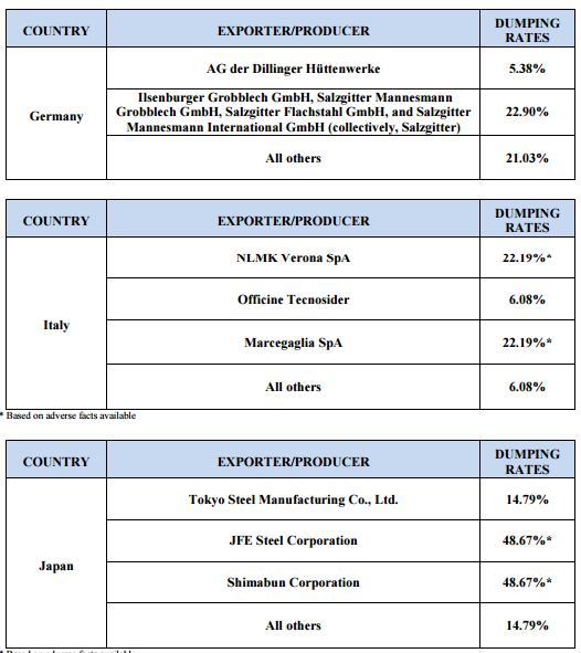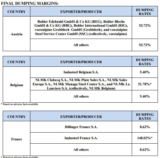 Commerce Imposes Dumping Margins on CTL Plate from 8 Countries