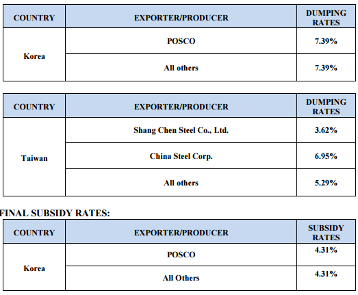 South Korea was also found to subsidize imports of CTL and was assigned a countervailing duty of 4.31 percent.