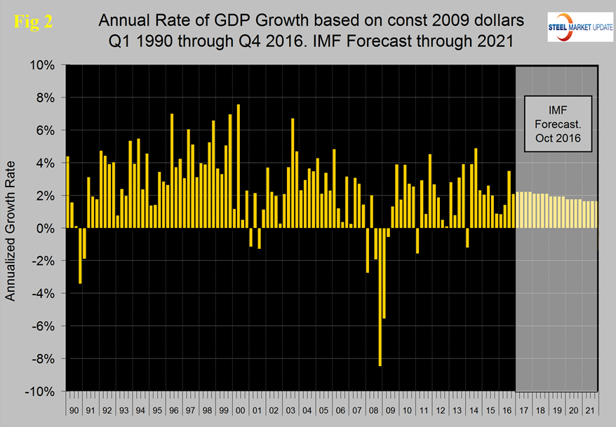In their October revision, the IMF downgraded their forecast of US growth in 2016 from their April 2016 estimate of 2.4 percent to 1.58 percent and downgraded 2017 from 2.50 percent to 2.20 percent. We expect the IMF to raise their 2017 forecast in their next update which will be released in about two weeks from now.