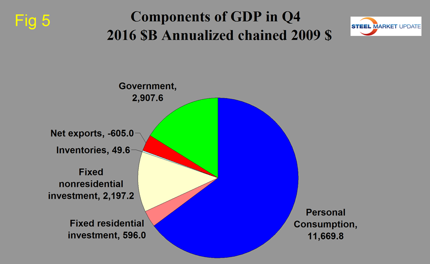 Figure 3 shows the change in the six major subcomponents of GDP in Q4 2016 and the dominance of personal consumption as a growth driver.