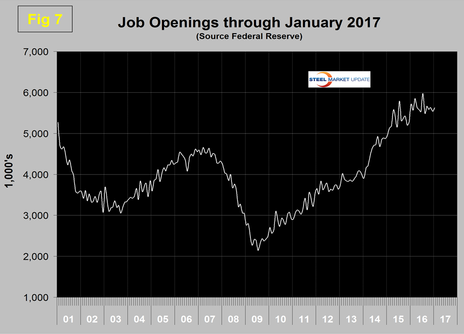 SMU Comment: Overall we think the employment situation is very good and has been described as “full” by some analysts. March was the 77th consecutive month of job growth and in the last 15 months, 7 have exceeded 200,000 jobs created per month. The road hauling sector has gained 31,500 jobs in the last three quarters which we regard as a general economic indicator. Job losses in the oil fields have halted. The results for manufacturing and construction are sign posts for steel sales activity. In the big picture, layoffs are historically low and job openings are close to all-time highs therefore the year has started off well.