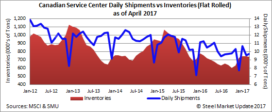 Canadian Distributor Flat Rolled Shipments/Inventories in March