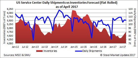 The following service center inventories data is based on the assumption that the MSCI data as presented is accurate on carbon flat rolled.
