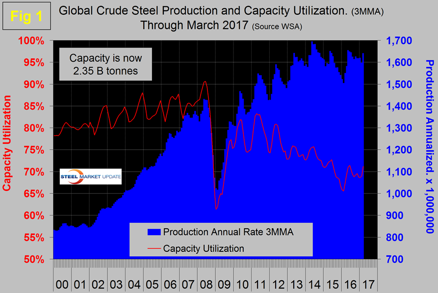 SMU Comment: A reduction in capacity do not necessarily result in a reduction in production. China’s efforts to reduce both capacity and pollution are not translating into lower production. In addition new plants are coming on stream world wide, the net result of closures and startups according to the OECD will be an additional 58 million tons of capacity by the end of 2018. A welcome report from the IMF in its April update of the World Economic Outlook raised the projected global growth rate for 2017 and 2018. Growth in the developing world is highly steel intensive therefore this will take some pressure off the low global rate of capacity utilization.