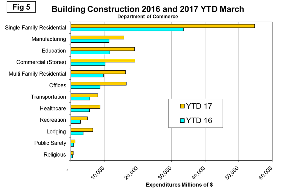 Figure 5 compares year to date expenditures for building construction for 2016 and 2017.