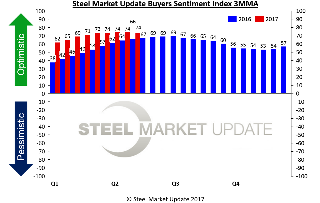 SMU Steel Buyers Sentiment Index 3MMA +73.50