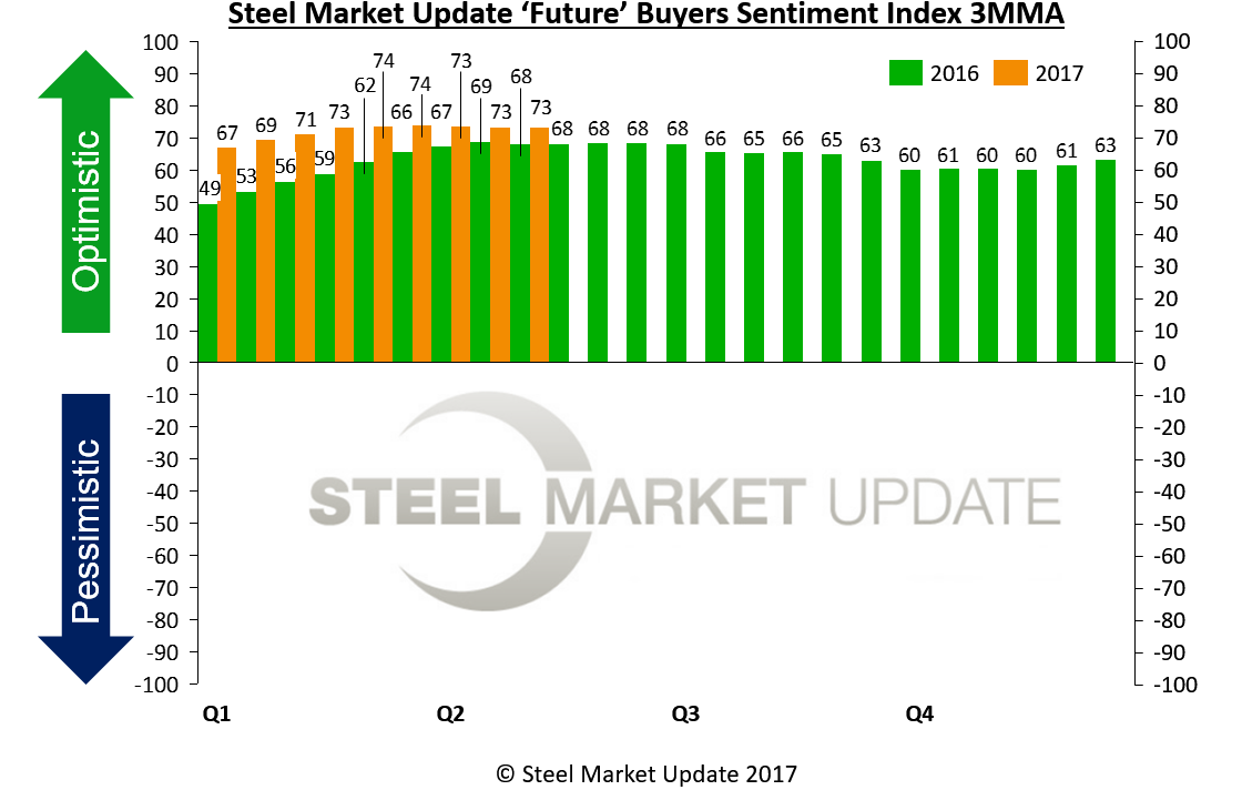 Future Sentiment, how buyers and sellers of steel feel about their company’s ability to be successful three to six months into the future, came in at +75 which ties the highest level since earlier in the year.