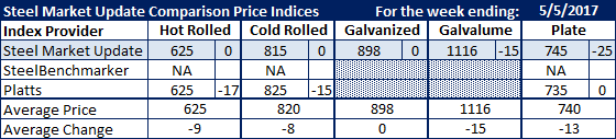 Last week we saw adjustments to the indices that brought the Steel Market Update and Platts numbers closer to one another.