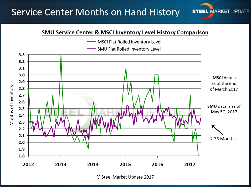 Steel Market Update (SMU) has been struggling to make sense of the most recent carbon flat rolled inventory numbers for service centers. What we learned from the MSCI did not match the conversations we were having with service center steel buyers across the country. SMU has been working on ways to provide a separate and independent review of distributor inventories. One of the ways is through our twice monthly flat rolled steel market trends analysis. We have added questions focused on inventories and, perhaps more importantly, how service centers are reacting to their current inventory situation either by becoming more active or less active buyer of flat rolled steels.