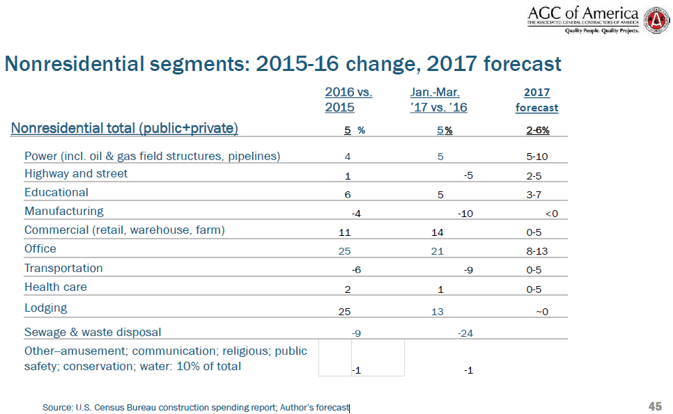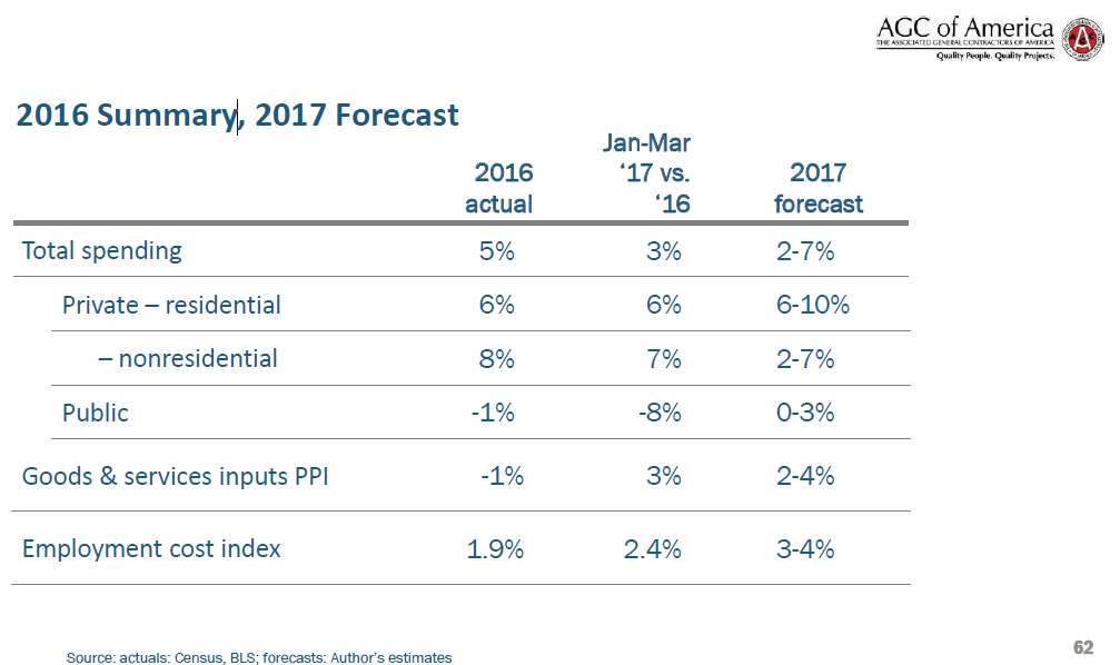 ConstructConnect presented a webinar May 11, entitled “Bump or Slump? 2017 Prospects for Design & Construction. AIA chief economist Kermit Baker and AGC of America Chief Economist Ken Simonson joined Carrick in discussing the construction industry.