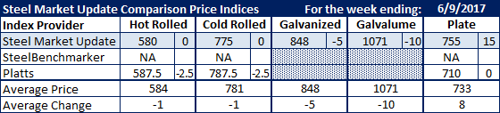 SteelBenchmarker, which only produces their steel prices twice per month, did not provide prices for this past week.