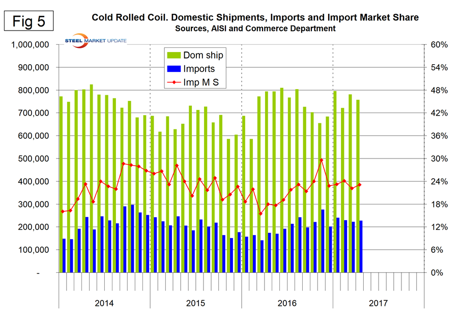 Figure 3 shows the import market share of sheet and long products through April, which is the latest data available.