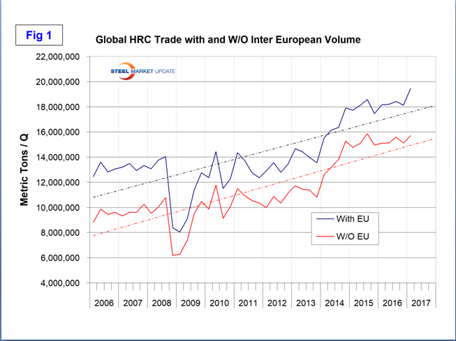 We are continuing our investigation to quantify the players in the global trade of both HRC and CRC. We now have data for the first quarter of this year. This information is sourced quarterly from the Iron and Steel Statistics Bureau in the UK. It takes about 10 weeks after the close of a quarter before all the countries have submitted their information. However, even if rather late, we think the history helps explain where we are now and shines a light on the relative position of the U.S. in the global picture. This update covers the global trade of HRC through Q1 2017.