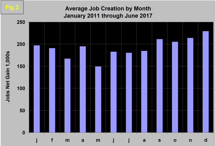 To examine if any seasonality is left in the data after adjustment, we have developed Figure 2. In the seven years since and including 2011, job creation in June has been up by 22.0 percent. This year, June was up by 46 percent, which is very encouraging. History says that July and August will be similar to June in spite of automotive re-tooling downtime.