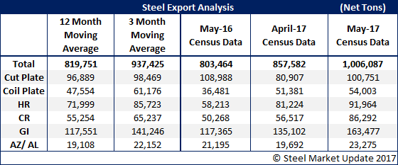 Here is a look at the flat rolled and plate products exported by the domestic mills during the month of May.