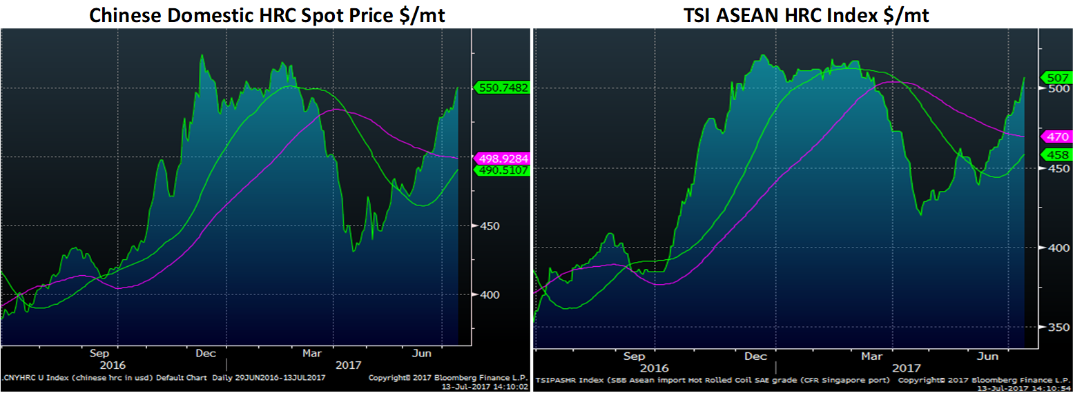 While anyone attached to the steel industry is anxiously awaiting the outcome of the Section 232 investigation, flat rolled prices in China have continued to rally back to just under the highs seen in the first quarter.