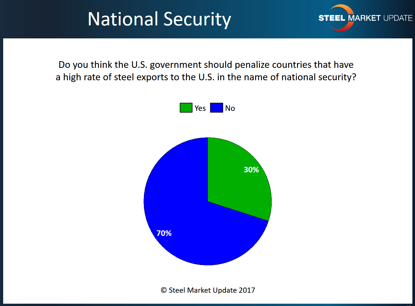One of the questions asked was, “Do you think the U.S. government should penalize countries that have a high rate of exports to the U.S. in the name of national security?”