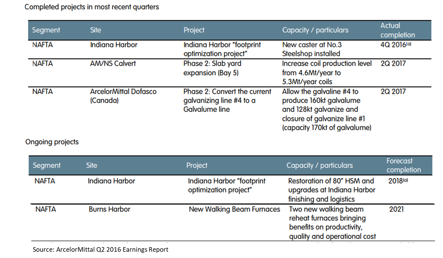 In second quarter, ArcelorMittal completed the slab yard expansion project at Calvert, and the Galvaline expansion at Dofasco.