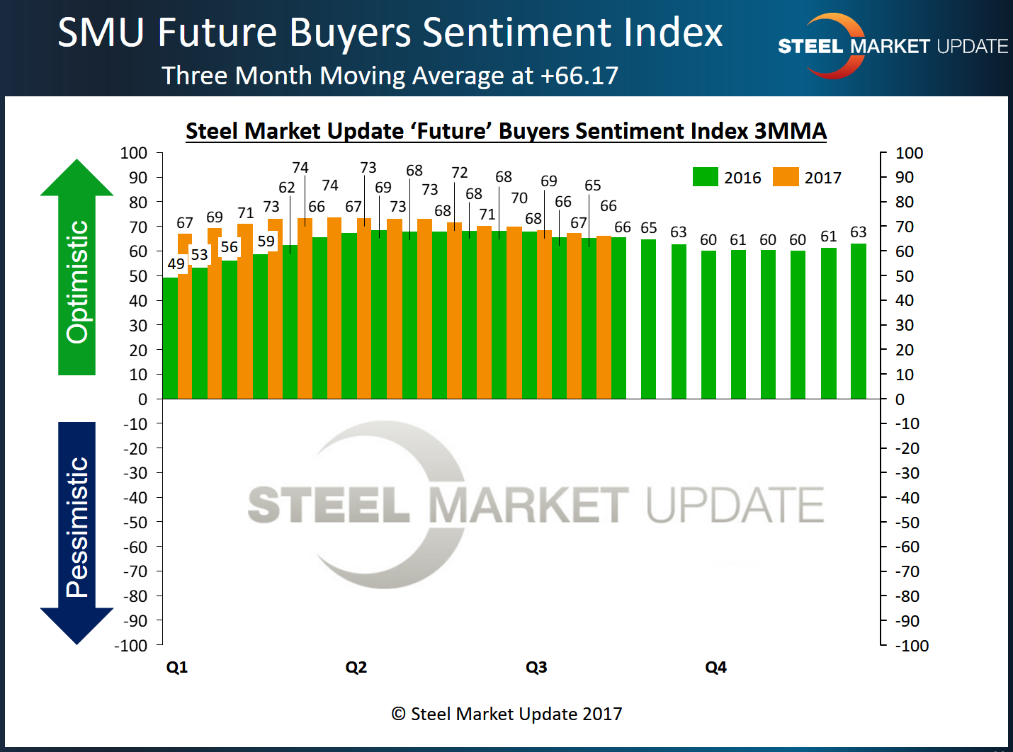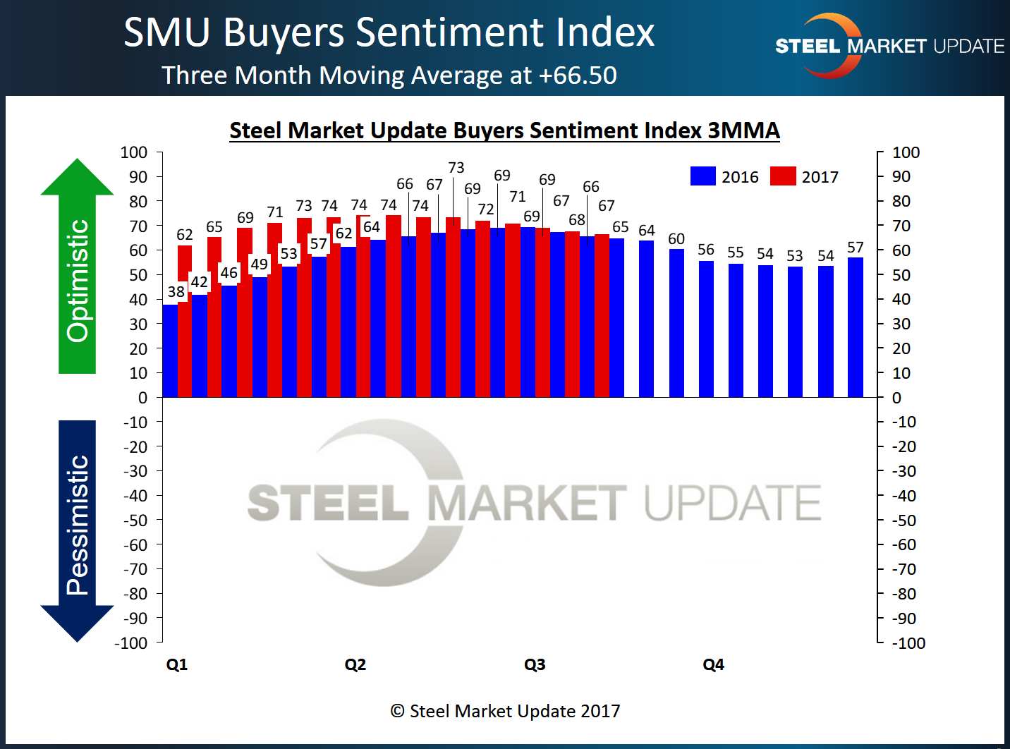 The SMU Steel Buyers Sentiment Index continues to represent buyers and sellers of flat rolled steel as being optimistic about their companies’ ability to be successful in both the current market environment as well as three to six months into the future.