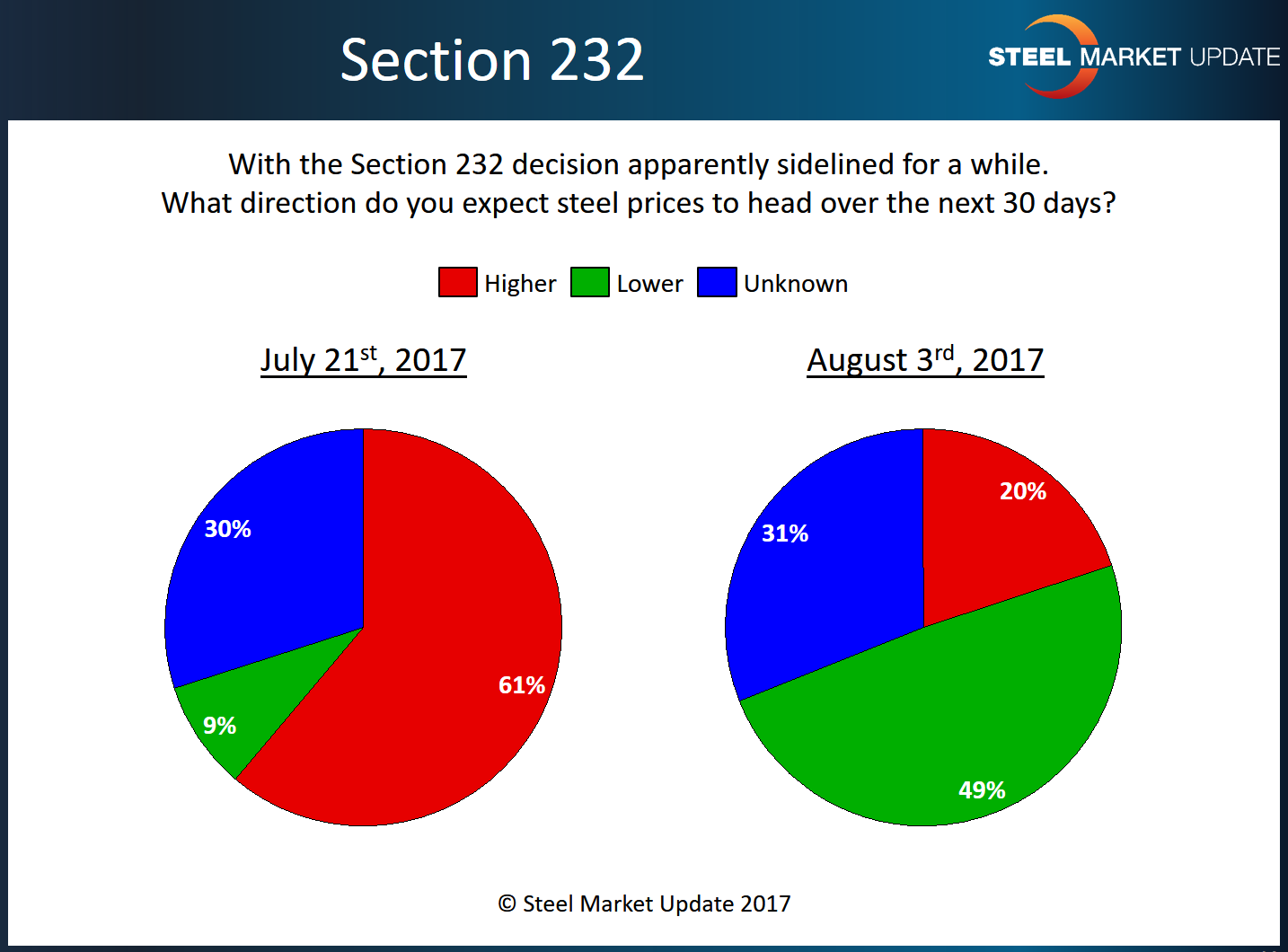 One of the questions will be how much foreign steel is coming in August, September and October. If we start to see a sharp drop, that could help deplete the high inventories. If, however, we see another month of 3.5 million tons or greater, then we need to adjust our Indicator.