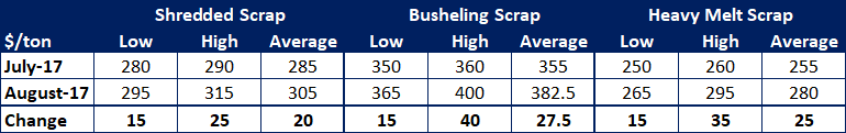 SMU Midwest Ferrous Scrap Pricing for August Delivery