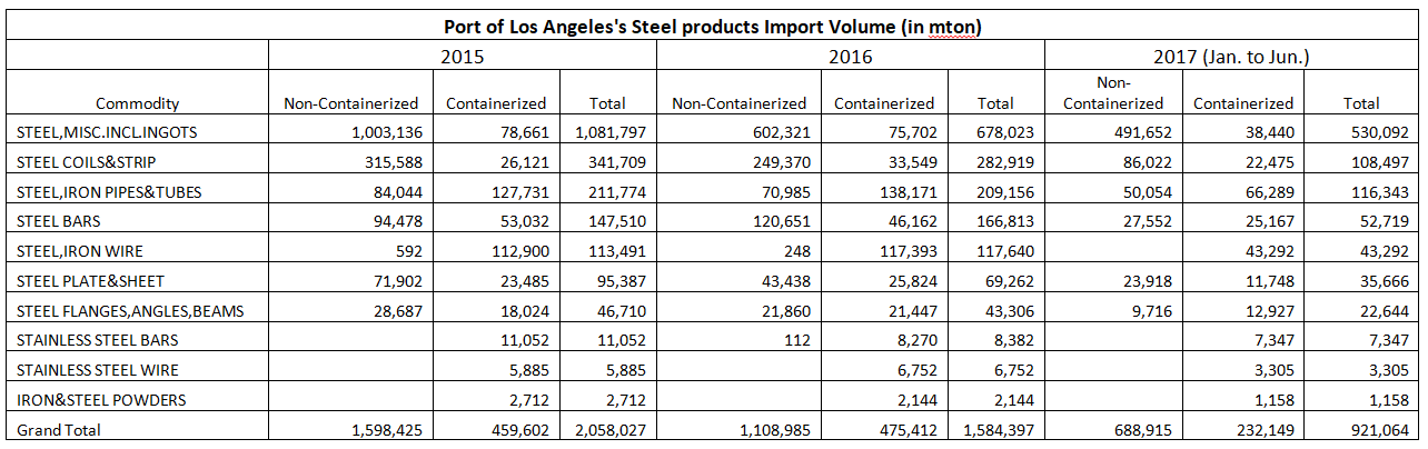 Steel imports from January to June totaled 1,016,282 short tons compared to 1,746,469 tons in all of 2016, and 2,268,548 tons in 2015. The chart below gives the breakdown by product in metric tons.