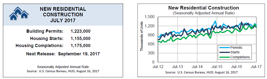 Permit authorization also fell in July, down 4.1 percent from June, while increasing 4.1 percent from 2016. Single-family housing starts were flat, while multi-unit starts dropped 12.1 percent.