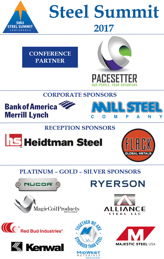 I want to take a moment to thank all of our sponsors. Pacesetter is our Conference Sponsor and they are also sponsoring the WiFi during the conference. Pacesetter agreed to be the top sponsor for our Steel Summit Conference for three years so that we could make commitments into the future. Please take a moment to thank the Pacesetter team when you come across them during the conference.