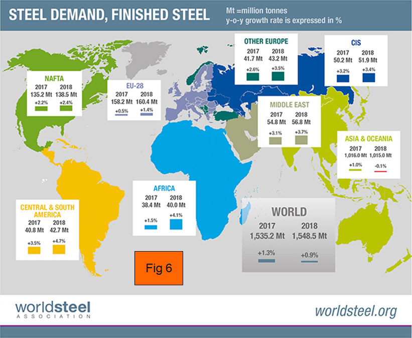 In previous monthly updates, we have included the April 2017 version of the World Steel Association Short Range Outlook for apparent steel consumption in 2017 and 2018, below. We will continue to include this as until the next update is released in October.