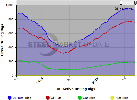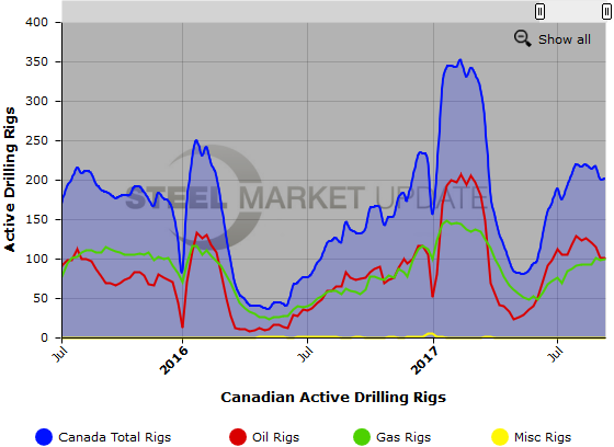 International rigs decreased by 7 to 952 rigs for the month of August, an increase of 15 rigs from the same month one year ago. For a history of both the U.S. and Canadian rig count, visit the Rig Count page on the Steel Market Update website here.