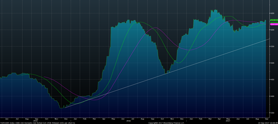 Collectively, while there seems to be some recent price pressure on the group, the uptrends remain unbroken and fundamentals continue to be strong. It’s been quiet out there on the futures front as the world slowly returns from the summer. All in all, variation is expected, but will it turn into a sharp selloff?