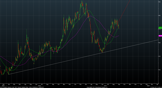 We see the same thing with the 2nd month CME Midwest HRC future as the index. Even though there has been some pressure on HRC futures this week, it can be expected as prices move around the range they’ve been in throughout 2017.