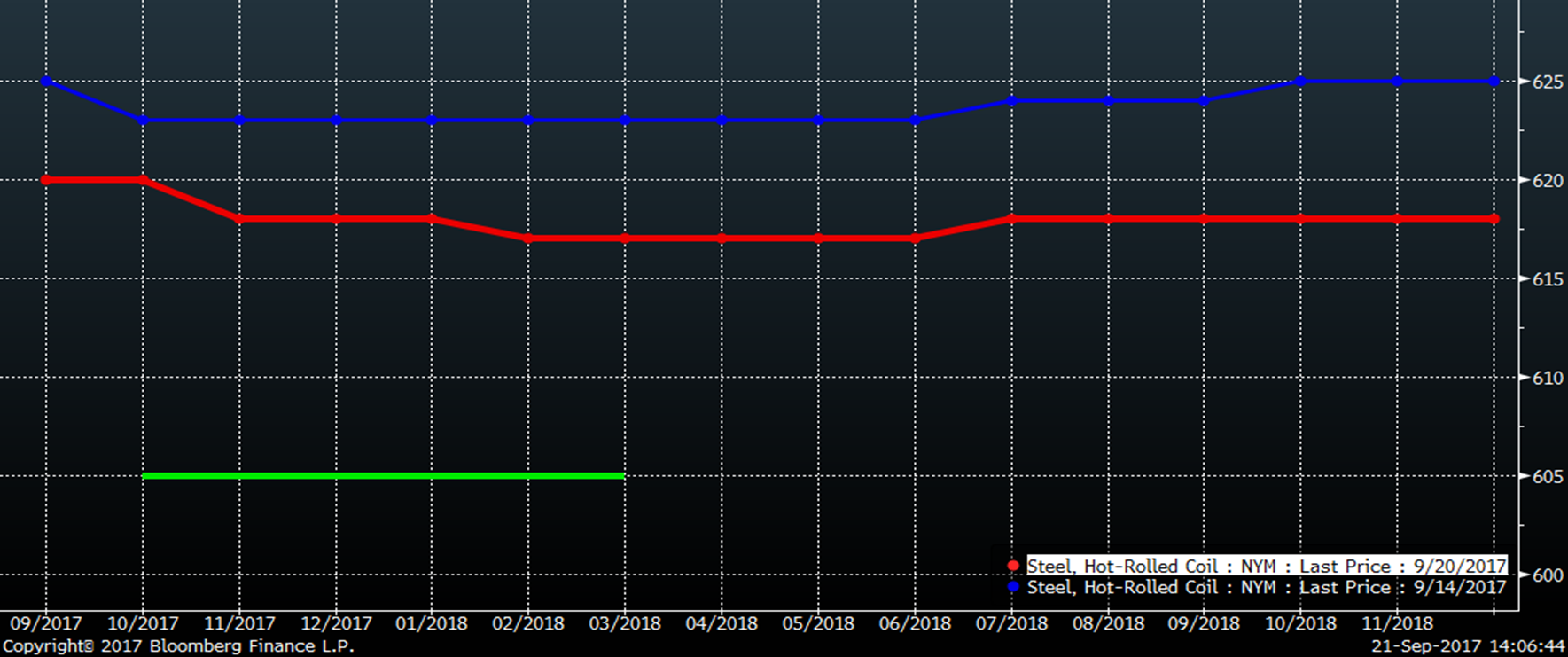 The following article on the hot rolled coil (HRC) futures markets was written by David Feldstein. As the Flack Global Metals Director of Risk Management, Dave is an active participant in the hot rolled futures market, and we believe he provides insightful commentary and trading ideas to our readers. Besides writing futures articles for Steel Market Update, Dave produces articles that our readers may find interesting under the heading “The Feldstein” on the Flack Global Metals website, www.FlackGlobalMetals.com. Note that Steel Market Update does not take any positions on HRC or scrap trading and any recommendations made by David Feldstein are his opinions and not those of SMU. We recommend that anyone interested in trading HRC or scrap futures enlist the help of a licensed broker or bank.