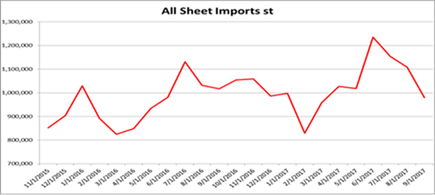 – Persistently low flat rolled inventory evidenced in the MSCI, ISM and Durable Goods reports