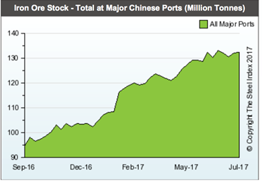 Fowler went on to discuss port stocks. “We track the major Chinese ports and they are above 130 million tonnes collectively. This build began a year ago, but dramatically increased in the January 2017 timeframe.”
